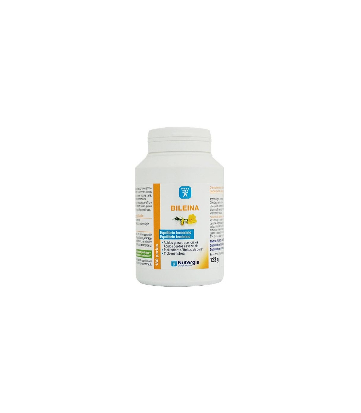 BILEINA esta compuesta por aceite de onagra 100%, obtenido por simple presión mecánica en frío. Se le añade vitamina E natural para conservar todas sus virtudes. El consumo de este aceite garantiza una toma de ácidos grasos poliinsaturados, beneficiosos para la mujer, en particular en caso de desórdenes relacionados con el ciclo y a nivel cutáneo.