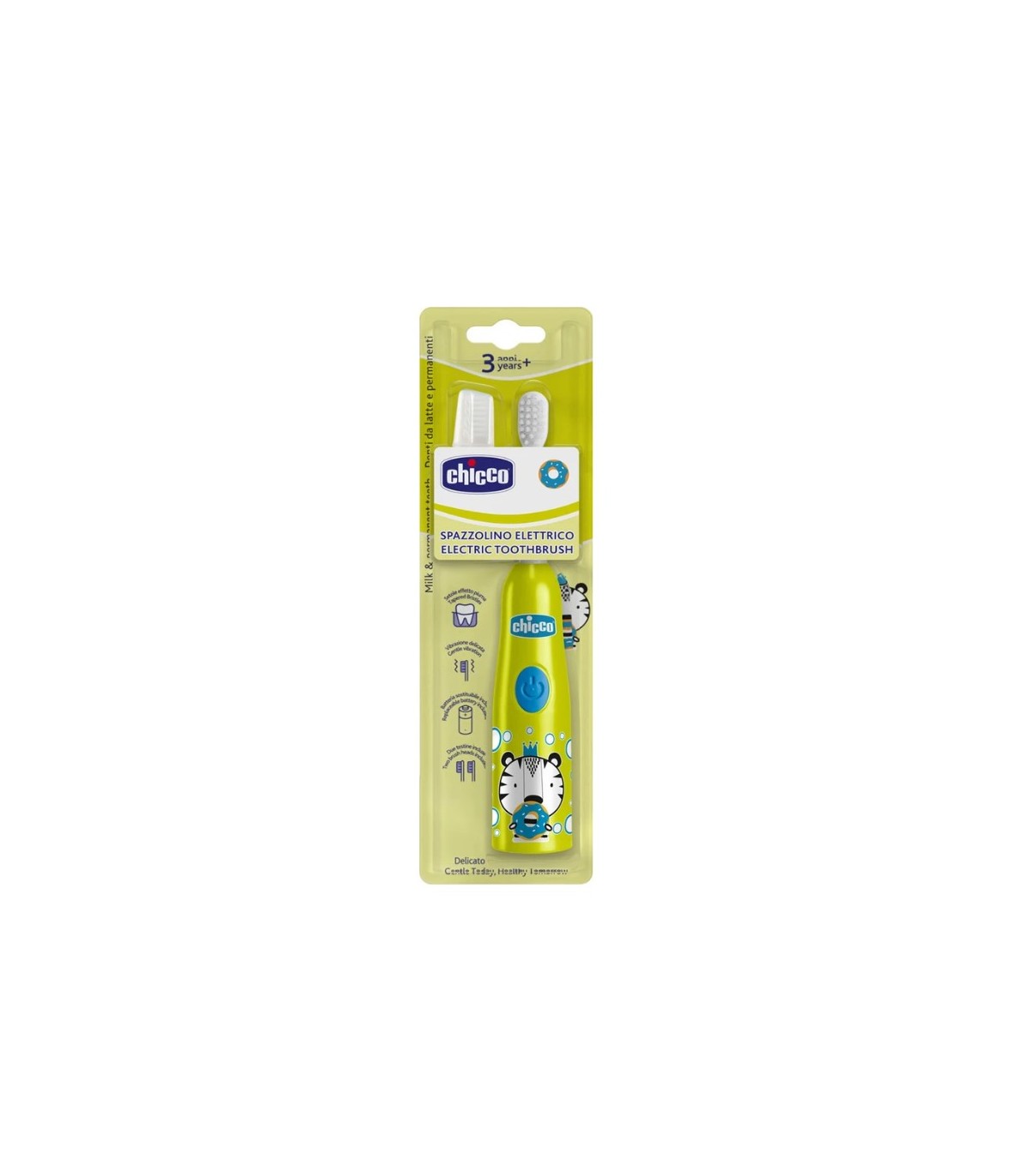 Un cepillo de dientes eléctrico con diseño divertido y ergonómico para que los niños puedan cepillarse los dientes de una manera fácil y eficaz. Su vibración es muy suave, diseñada especialmente para los más pequeños,