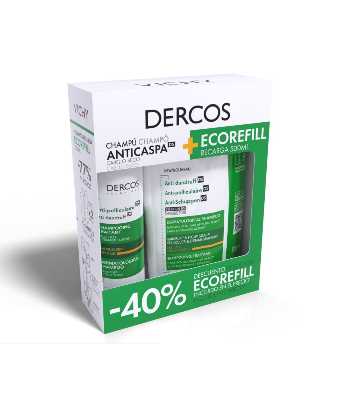 DERCOS PACK CHAMPU CASPA SECO+RECARGA 500ML