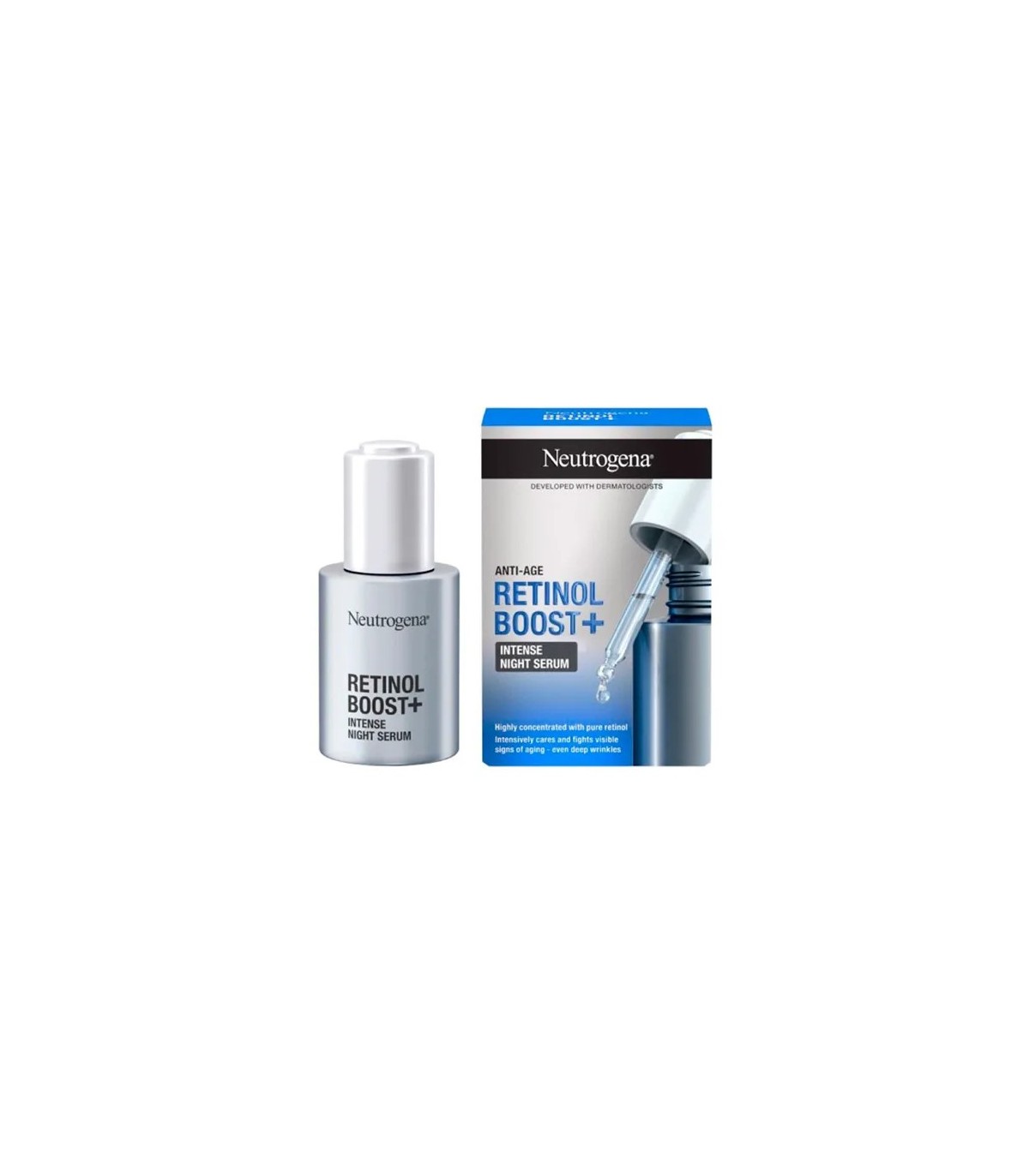 Este sérum de noche antiedad con 0,23% de retinol puro, superconcentrado y de rápida absorción, ofrece un cuidado intenso para la piel. Esta fórmula de Neutrogena nutre eficazmente la piel y ayuda a combatir los signos visibles del envejecimiento, liberando retinol puro en la superficie de la piel para eliminar hasta las arrugas más profundas.